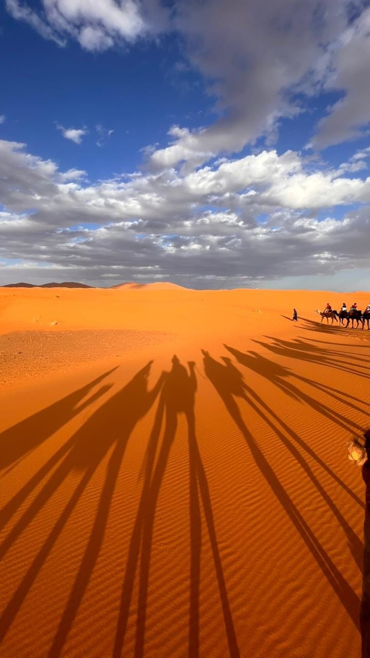 The highlight? A sunset camel trek into the heart of the Sahara, followed by a night in a traditional Berber desert camp under a sky full of stars. Dinner around the campfire with live Berber music, then wake up to watch the sunrise paint the dunes in shades of gold and pink.