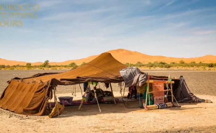 Today after breakfast. We set off to Todra Valley: a green fertile one surrounded by old mud villages, we drive around 15 km to get to Todra gorges: In a valley lined with palm trees and Berber villages, a canyon rises to 300 meters. We proceed to the Sahara Desert after lunch in the gorge, passing via an old subterranean irrigation system ( Khettarat ). We’ll continue south until we reach the Sahara Desert, where your camels will be waiting to take you on a ride across the golden sands. Your camel guide will make a pit break for you to watch a spectacular sunset on the top of a high dune before returning you to the camp (tents like nomads use). After a rest, our 3 days Marrakech Fes desert trip will provide you with a delectable dinner, followed by the opportunity to listen to and dance to Berber music performed by nomads around a fire and under the stars.